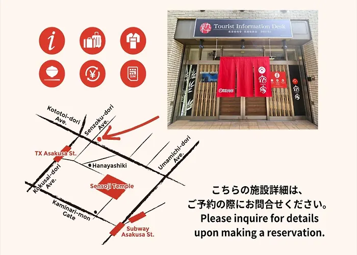 Denne indkvartering ligger tæt ved Honryuin, og inden for 550 meter fra Asakusa metrostationen. Sumida-akvariet er tilgængelige inden for 15 minutters går gang. Benkei Asakusa Honten og Asakusa Tonkatsu Nakane serverer forskellige retter 150 meter derfra.